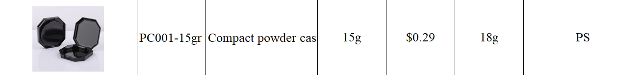 The 15g Octagonal PS Compact Powder Case is a premium solution for makeup storage and application. Designed to be compact and lightweight, it is perfect for on-the-go use, ensuring your makeup is always within reach and securely stored.