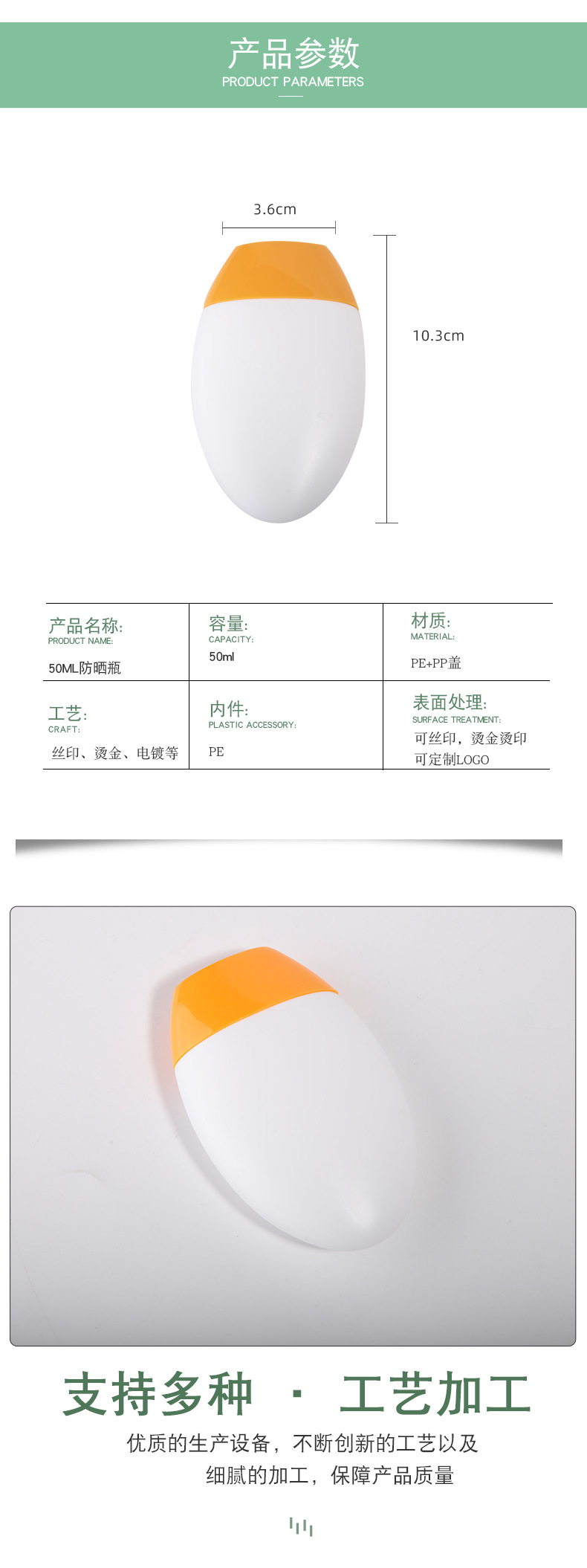 Constructed with a PP cap and PE body, this sunscreen cream bottle offers excellent durability and resistance to wear and tear. The materials used in this bottle are safe and environmentally friendly, ensuring that your products remain uncontaminated and of high quality.