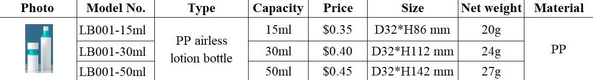 - Model No.: LB001-15ml / LB001-30ml / LB001-50ml